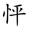 (形声。从心,平声。本义:心急) 同本义 [impatient]。如:怦怦(心急、心跳的样子);怦营(彷徨、惊惧)