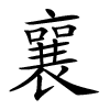 (会意。据金文,“襄”是手拿农具在地里挖一个个小洞,放进种子,再盖土。《说文》称“解衣耕”。本义:解衣耕地)