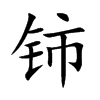 金屬元素。符號Ce。灰色結晶,很亮,質柔軟,有延展性,化學性質活潑,是優良的還原劑,可用來制合金(如製造火石的鑭鈰合金)。(此字在人名庫中共出現約:190次)