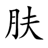 膚(膚) fū身體表面包在肌肉外面的組織:皮~組織。~色發黃。切~之痛。〈喻〉表面的,淺薄的:~淺。~見(淺薄的見解)。