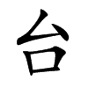 4<名>星名,即三台(六顆星)。古代用「三台」比「三公」(古代最高的官位),因此舊時常用「台」來作為對別人的敬稱。如「兄台」、「台甫」。