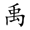 (象形。小篆字形。本義:蟲名。《說文》:「蟲也。」一說為齲蟲) 遠古夏部落領袖[the reputed founder of the Xia Dynasty]。姒姓,名文命,鯀之子