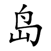 (形聲。從山,鳥聲。本義:江、湖、海洋中被水所包圍而比大陸要小的一片陸地) 同本義 [island]