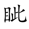 泛指眼睛 [eye]。如:眥占(側目而視);眥血(眼睛瞪裂而流出的血);眥決(眥裂);眥詬(眼屎);眥淚(眼淚)