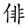 对偶,骈俪 [a type of writing]。如:俳偶(对偶骈丽);俳语(讲究对偶的骈体文字);俳丽(对偶骈丽)