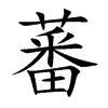 蕃fān 1.通"藩"。篱落;屏障。 2.通"藩"。藩屏;捍卫。 3.通"藩"。封建王朝分封的侯国。 4.通"藩"。颊侧。 5.通"番"。周代谓九州之外的夷服、镇服、蕃服。后用以泛指域外或外族。 6.通"番"。轮流更替。参见"蕃匠"。 7.通"?"、"轓"。车耳两旁反出如耳的部分,用来遮蔽尘土。