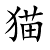 家畜。面部略圓,腳有利爪,行動敏捷,善長捕鼠。(此字在人名庫中共出現約:110次)