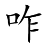 又如:咋指(咬指出血以自誓);咋噬(咬嚼吞吃);咋筆(操筆。古人構思為文時常以口咬筆桿,故稱)