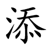 五筆98:IGDN 倉頡:EHKP 四角號碼:31138 UniCode碼:U+6DFB 規範漢字編號:2411