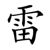 (象形。甲骨文,中間象閃電,圓圈和小點表示雷聲。整個字形象雷聲和閃電相伴而作。小篆變成了會意字,從雨,下象雷聲相連之形,表示打雷下雨。本義:雲層放電時發出的巨響)
