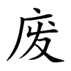 (形聲。從廣,發聲。從「廣」,表示與房屋有關。本義:房子傾倒)
