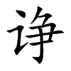 諍zhēng 1.通"爭"。爭訟﹔爭論。 2.通"爭"。爭奪﹔爭競。 3.用同"睜"。瞪大著眼睛。