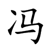 馮ping 1.馬行疾。引申為激怒,憤懣。 2.大;盛大;滿。參見"馮怒"﹑"馮閎"。 3.貪得;貪求。參見"馮生"。 4.欺陵;侵侮。 5.挾持。參見"馮珧"。 6.徒涉;蹚水。 7.登;乘。 8."憑"的古字。依著;靠著。 9."憑"的古字。亦指所靠之物。 10."憑"的古字。憑借;依恃。 11.通"朋"。古代計算貨幣的單位。上古以貝殼為貨幣,五貝為一串,兩串為一朋。