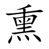 (俗作燻。會意。金文,上面象火煙冒出,中間是煙突(本古「窗」字),兩點表示煙苔,下面是火焰。合起來是煙突冒煙。本義:火煙向上冒)