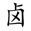 (象形。金文字形,象鹽罐(或鹽池)中有鹽形。本義:鹽鹼地)