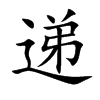 傳;傳送 [pass;hand over;transmit]。如:恭敬地遞上;遞鍾(傳杯,把盞);遞傳帖(遞送帖子);遞局(遞眼色;示意);遞夫(古代在驛站間運送官方貨物的
