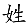 (會意兼形聲。從女,從生,生亦聲。本義:標誌家族系統的字)