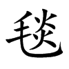毯,毛席。--《廣韻》。又如:毯布(用細毛織成的布);線毯;地毯;掛毯;毛毯;絨毯