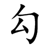 五筆98:QCI 倉頡:PI 四角號碼:27720 UniCode碼:U+52FE 規範漢字編號:0158
