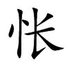 悵(悵)chang失意,懊惱:~惘。~恨。惆~。