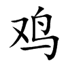 (形聲。從鳥,奚聲。本義:家禽名。雄雞可以報曉) 鳥綱雉科家禽,品種很多,喙短銳,有冠與肉髯,翅膀短,尤指普通家雞(Gallus gallus) [chicken]