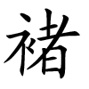褚zhǔ 1.用綿裝衣服。亦指綿衣。 2.指所裝的綿絮。 3.囊袋。 4.儲藏。 5.古代棺飾名。大夫以上所用的形如宮室緊貼棺身的棺罩。