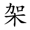 又如:十字架;三腳架;架樁(原指吃完雞鴨剩的骨架,江湖暗語指人的屍體);架閣(官署中用以保存公文案卷的木架;借指耽擱,放在一旁不管)