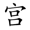 (象形。甲骨文字形,象房屋形。在穴居野處時代也就是洞窟。外圍象洞門,裡面的小框框象彼此連通的小窟,即人們居住的地方。本義:古代對房屋、居室的通稱(秦、漢以後才特指帝王之宮))