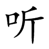 (形聲。本字從耳德,壬聲。從耳德,即耳有所得,今簡化為「聽」。「聽」本義「笑貌」。從口,斤聲。本義:用耳朵感受聲音)