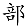 五筆98:UKBH 倉頡:YRNL 四角號碼:07627 UniCode碼:U+90E8 規範漢字編號:2044
