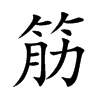 (會意。從肉,從力,從竹。因為竹多筋,故從「竹」。本義:附著在骨上的韌帶)
