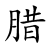 ⒈〈古〉十二月的一種祭祀。後因稱夏歷十二月為"臘月":~八(臘月初八)。~肉(臘月或冬天醃製後風乾或煙熏過的肉)。