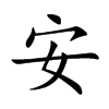 安是平安、安定的意思。它指兩個方面的平安,安定。首先是國家、社會的安定、穩定,是與動盪、離亂相對立的。另一層意思是指個人對環境或事物感到安適、滿足或習慣,有安全、舒服的意思,是與危險,不適應相對的。由此看來,安是朝野上下都期望的局面和情境。舊時此類吉慶語有平安如意、竹報平安、歲歲平安、四季平安、安居樂業等。 人名用安字,多取前一層意思,表示抱負或期望。(此字在人名庫中共出現約:452310次)