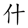 五筆98:WFH 倉頡:OJ 四角號碼:24200 UniCode碼:U+4EC0 規範漢字編號:0129