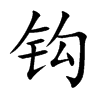 (會意。從金,從句,句亦聲。「句」,彎曲。也具有表意作用。本義:衣帶上的鉤。引申為「 釣魚或掛物用的鉤」)