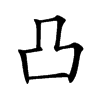 高出 [convex;raised]。高於周圍的,如球形或圓形的外部或其一部分那樣彎曲的--指從外面觀看一個球面或曲線。如:凸兀(高出);凸凸(高出貌);凸凸囊囊(猶鼓鼓囊囊);凸凹(高低不平);凸杯(滿杯);凸岸;凸鏡;凸透鏡