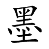 (会意兼形声。从土,从黑,黑亦声。本义:书画所用的黑色颜料,用松烟等原料制成)