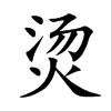 皮膚接觸溫度高的東西感到疼痛或損傷。也指用溫度高的東西使另外的東西起變化。(此字在人名庫中共出現約:120次)