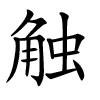 五筆98:QEJY 倉頡:NBLMI 四角號碼:25236 UniCode碼:U+89E6 規範漢字編號:2980