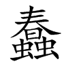 本義指昆蟲慢慢地爬行。引申為騷動,動亂,愚昧,笨拙等含義。(此字在人名庫中共出現約:70次)