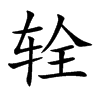 又如:輇輪(沒有條輻的車輪);輇車(一種車輪沒有條輻的車子)