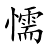 (形聲。從心,需聲。本義:膽小,含有軟弱之意;弱)