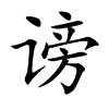 (形聲兼會意。從言,旁聲。本義:在背後公開地議論或批評某人的短處)