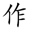 (会意。从人,从乍。人突然站起为作。甲骨文字形,象衣领初作的形状。本义:人起身)
